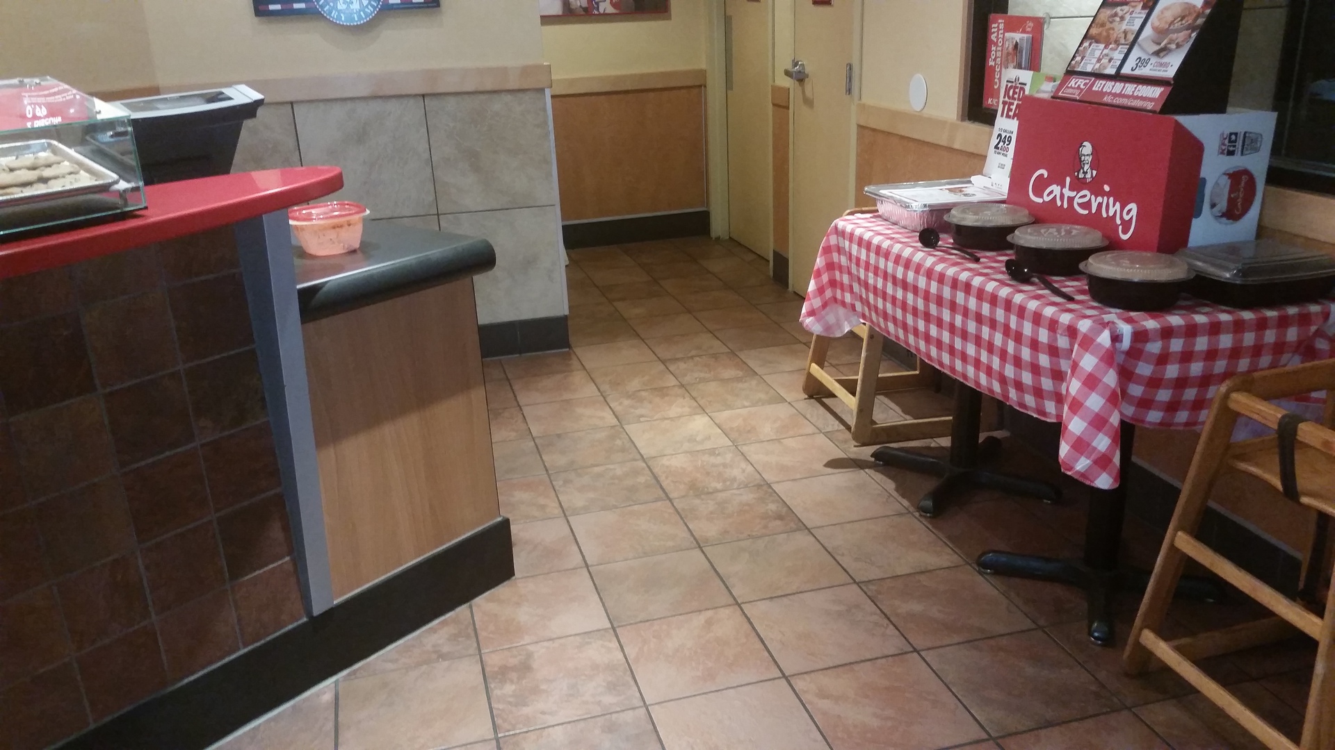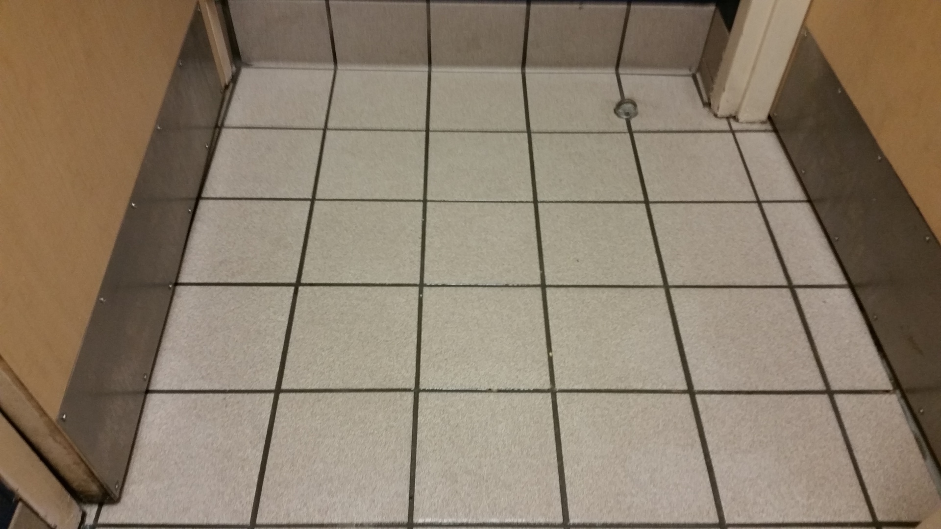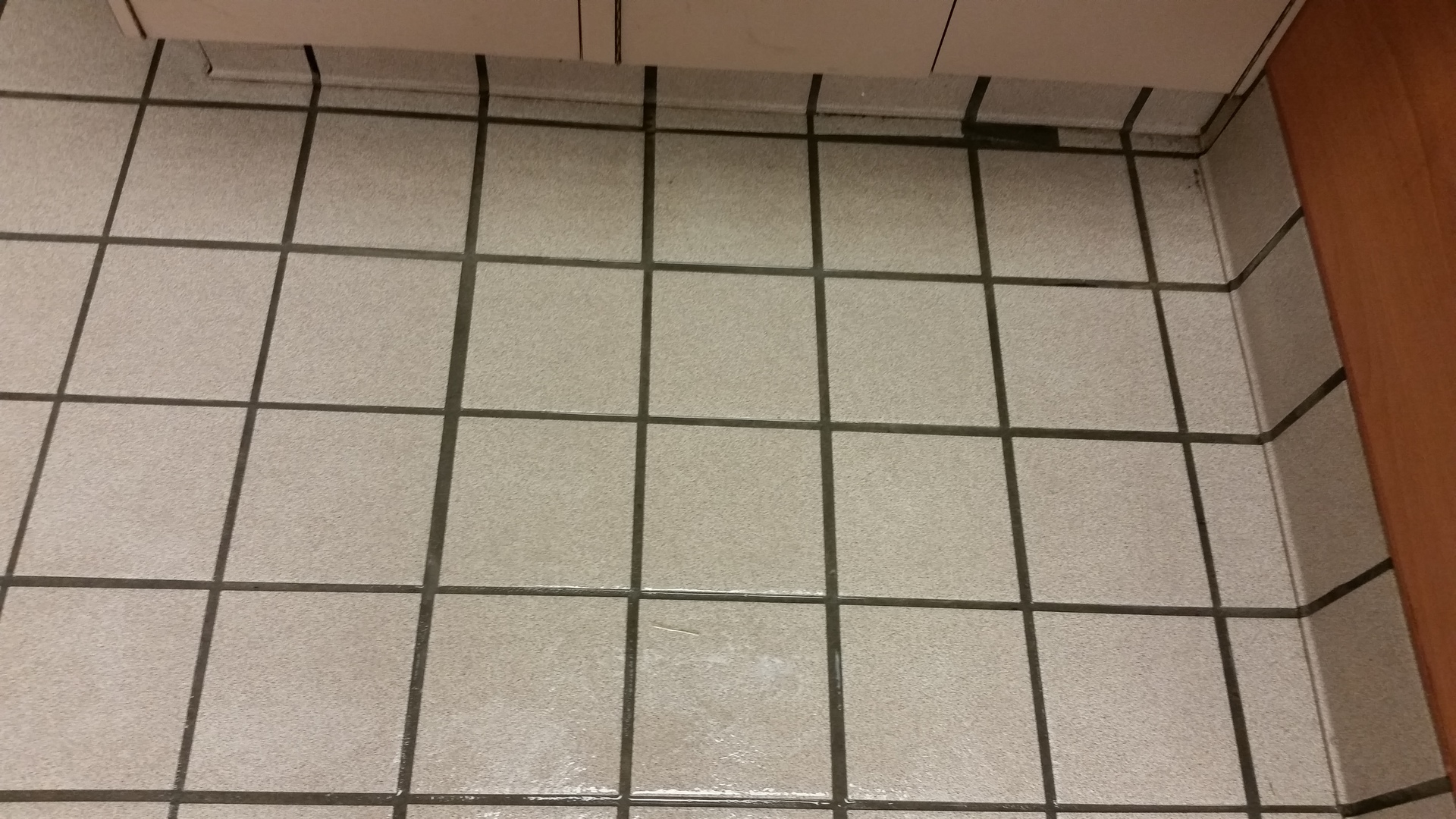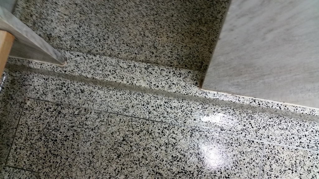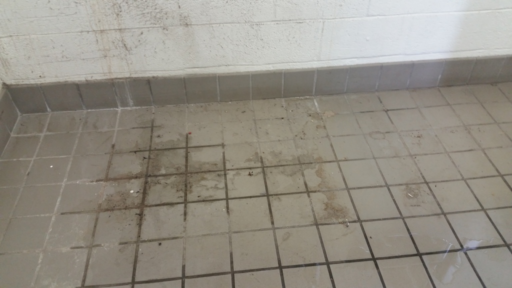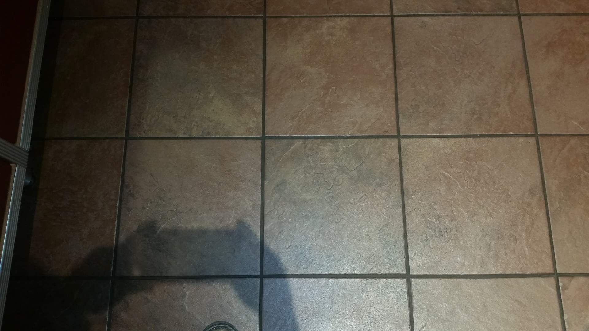 This customer had just paid for his floor to be redone earlier in the year. No top coat was applied and tire mraks were made along with hot tire pickup. We ground away the old paint and applied a new epoxy system with flecking. Then we applied a top coat to protect the appearance and increase the durability of the floor.