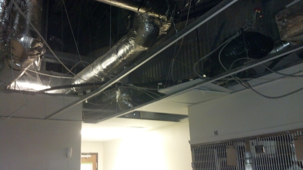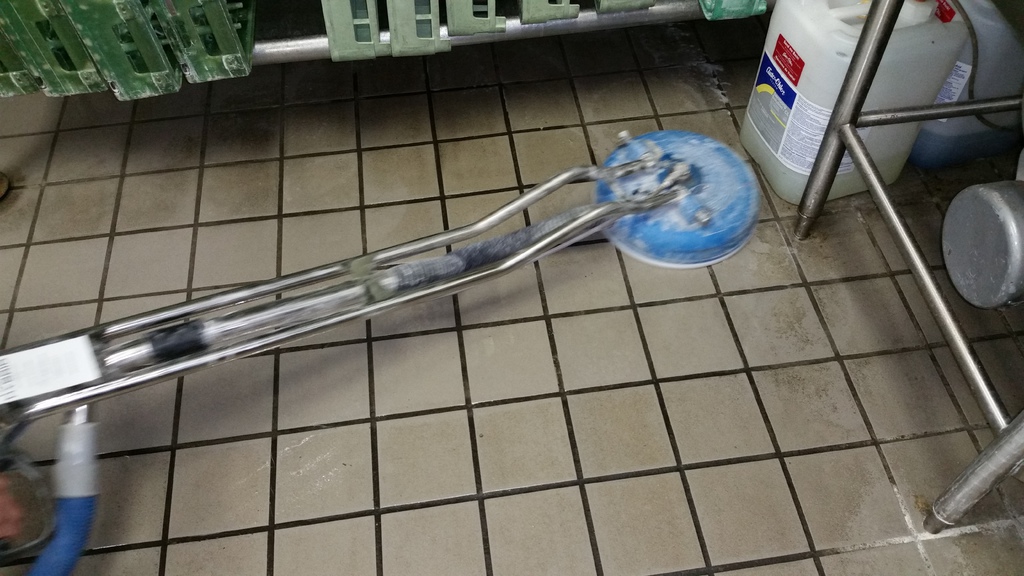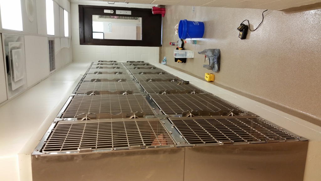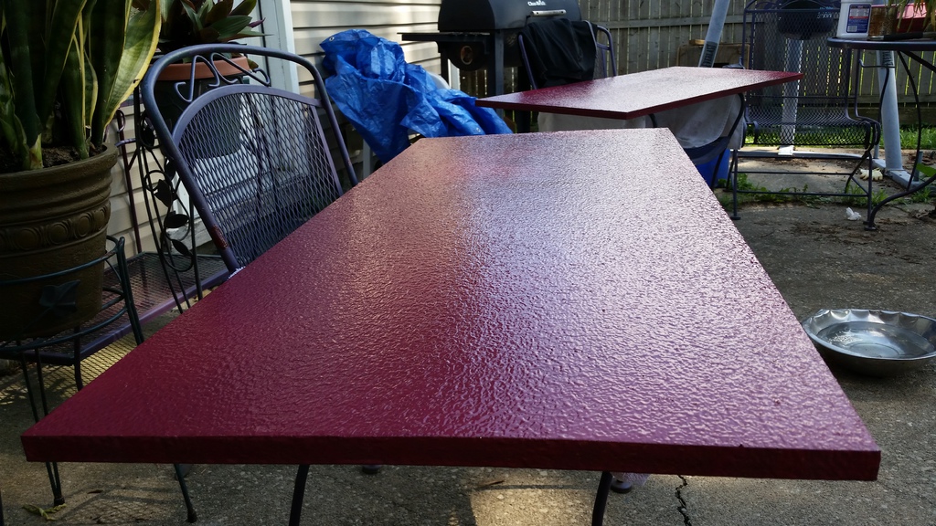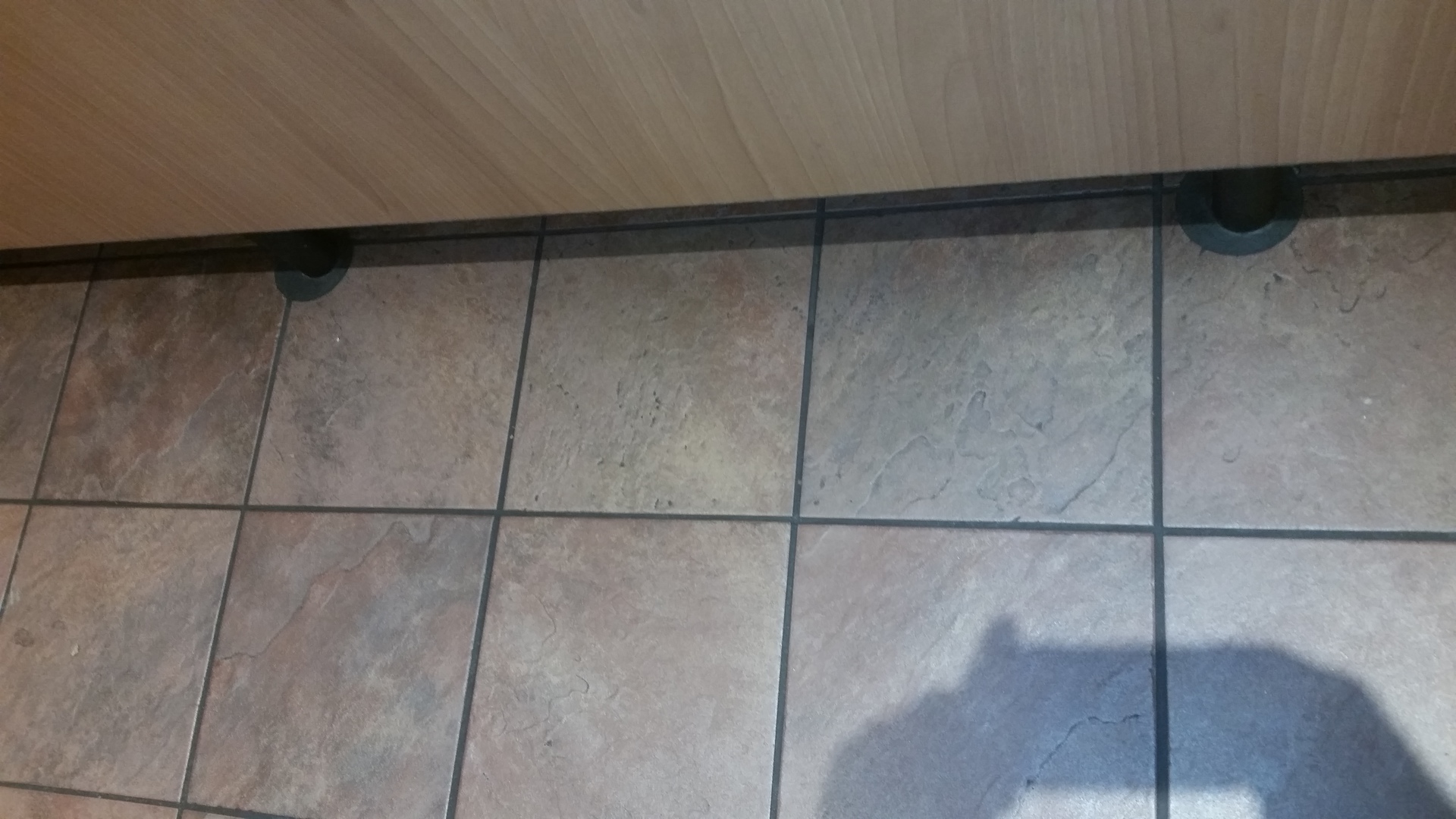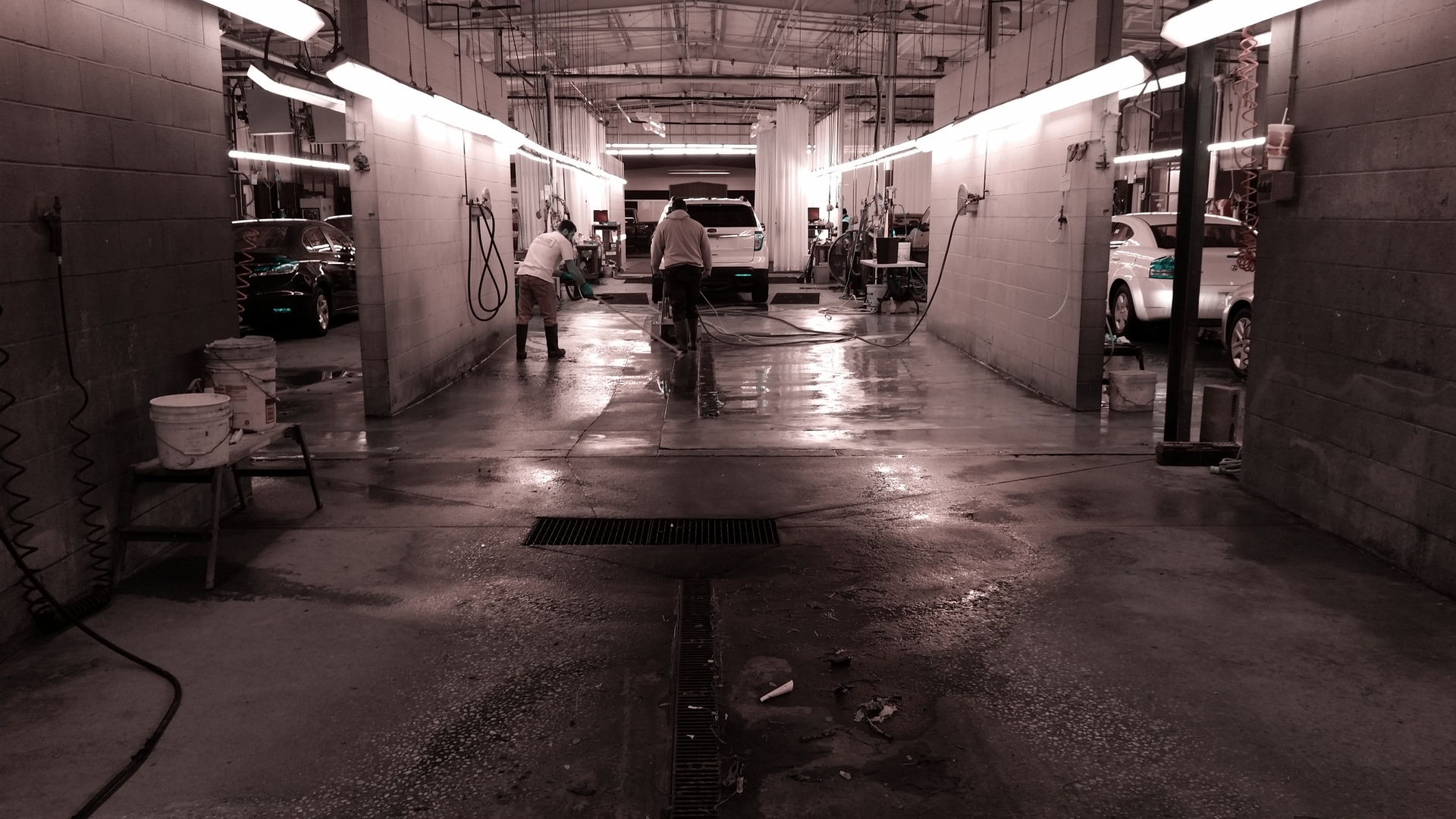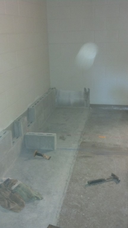 This customer had just paid for his floor to be redone earlier in the year. No top coat was applied and tire mraks were made along with hot tire pickup. We ground away the old paint and applied a new epoxy system with flecking. Then we applied a top coat to protect the appearance and increase the durability of the floor.
